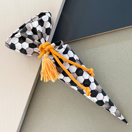 Schultüte mit Namen aus Stoff Fußball | Zuckertüte für Jungen Personalisierbar „LITTLE SOCCER STAR“