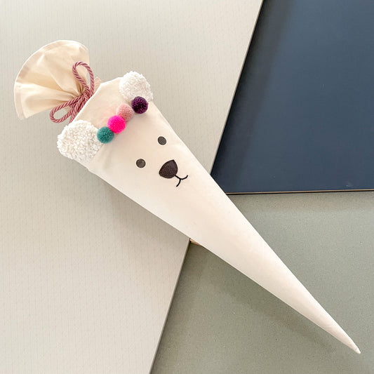 Schultüte mit Namen aus Stoff | Zuckertüte für Mädchen Personalisierbar „LITTLE ICE BEAR" Bär
